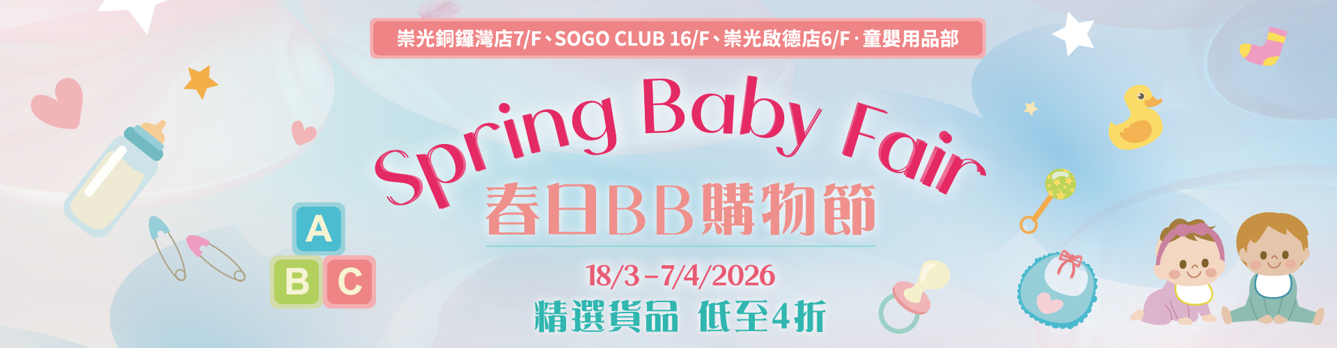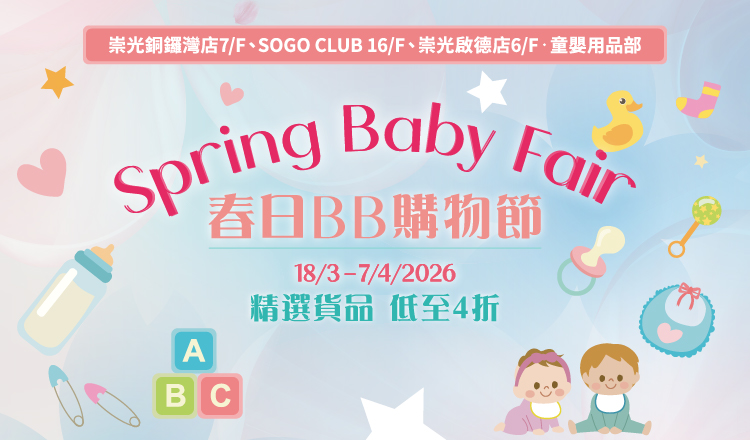 From 18/3 to 7/4/2026, Spring Baby Fair will be held at SOGO Causeway Bay Store and Kai Tak Store.