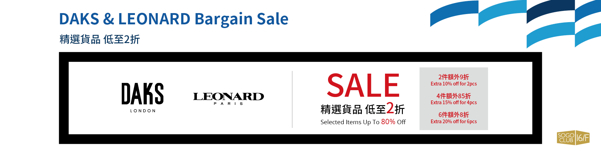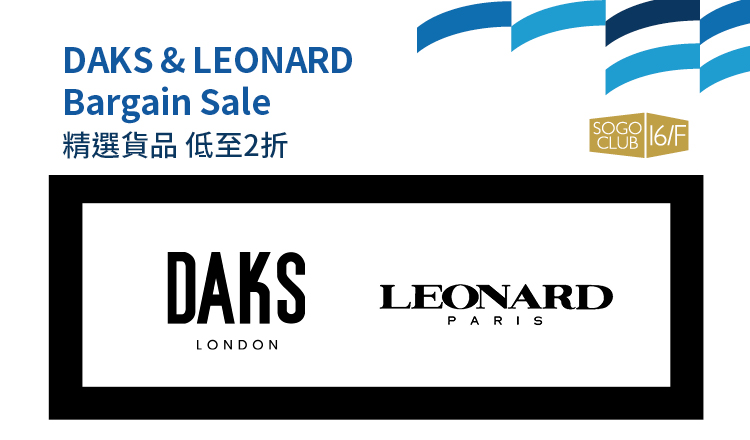 於9/10/2025至15/10/2025期間,DAKS & LEONARD Bargain Sale於崇光銅鑼灣店SOGO CLUB 16/F舉行,歡迎親臨選購精選貨品,尊享低至2折優惠。