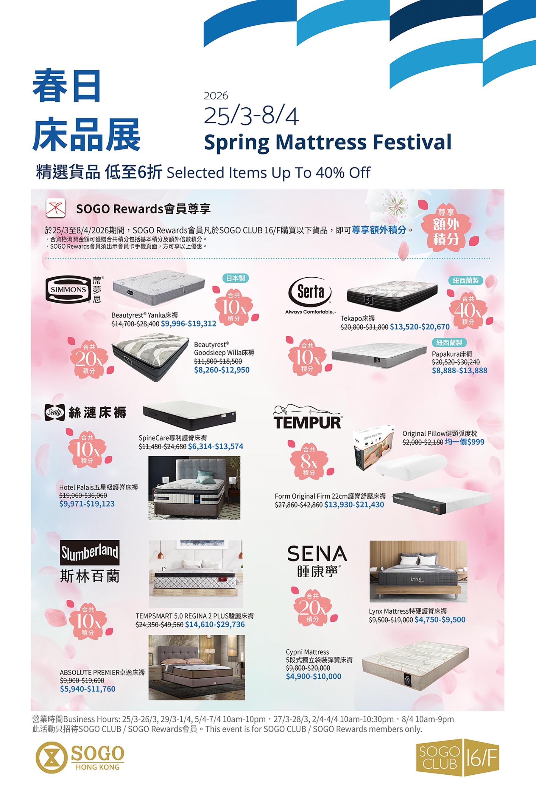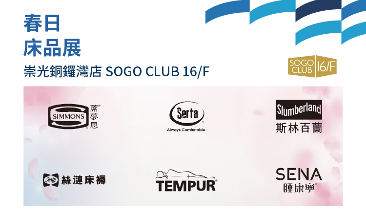 由25/3至8/4/2026期間,春日床品展於崇光銅鑼灣店SOGO CLUB 16/F舉行,歡迎親臨選購精選貨品,尊享低至6折優惠。