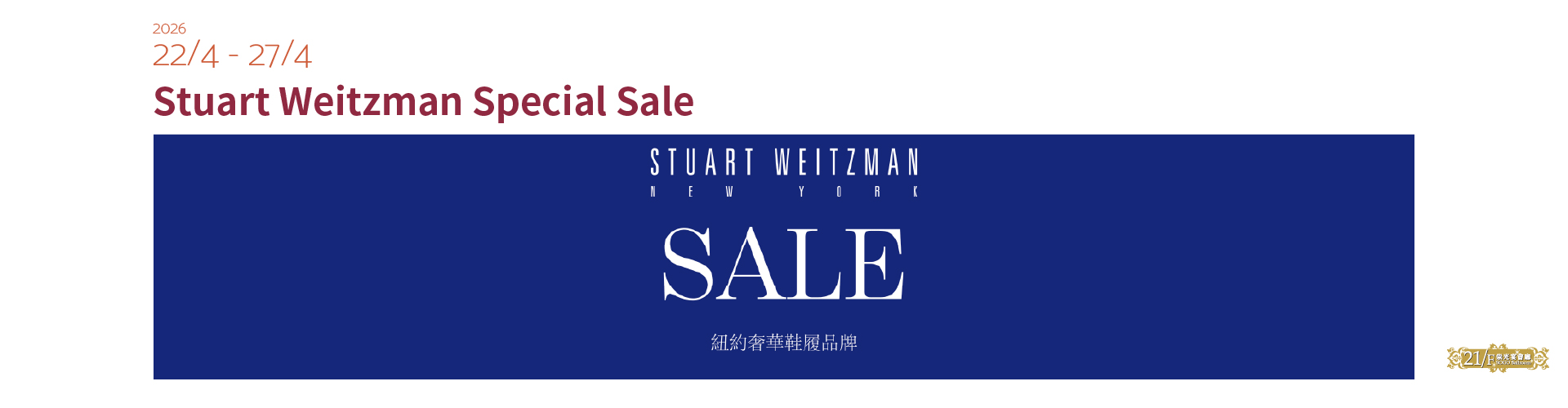 於由22/4至27/4/2026期間,Stuart Weitzman Special Sale 於崇光銅鑼灣店21/F崇光宴會廳舉行,歡迎親臨選購精選貨品,尊享低至2折優惠。